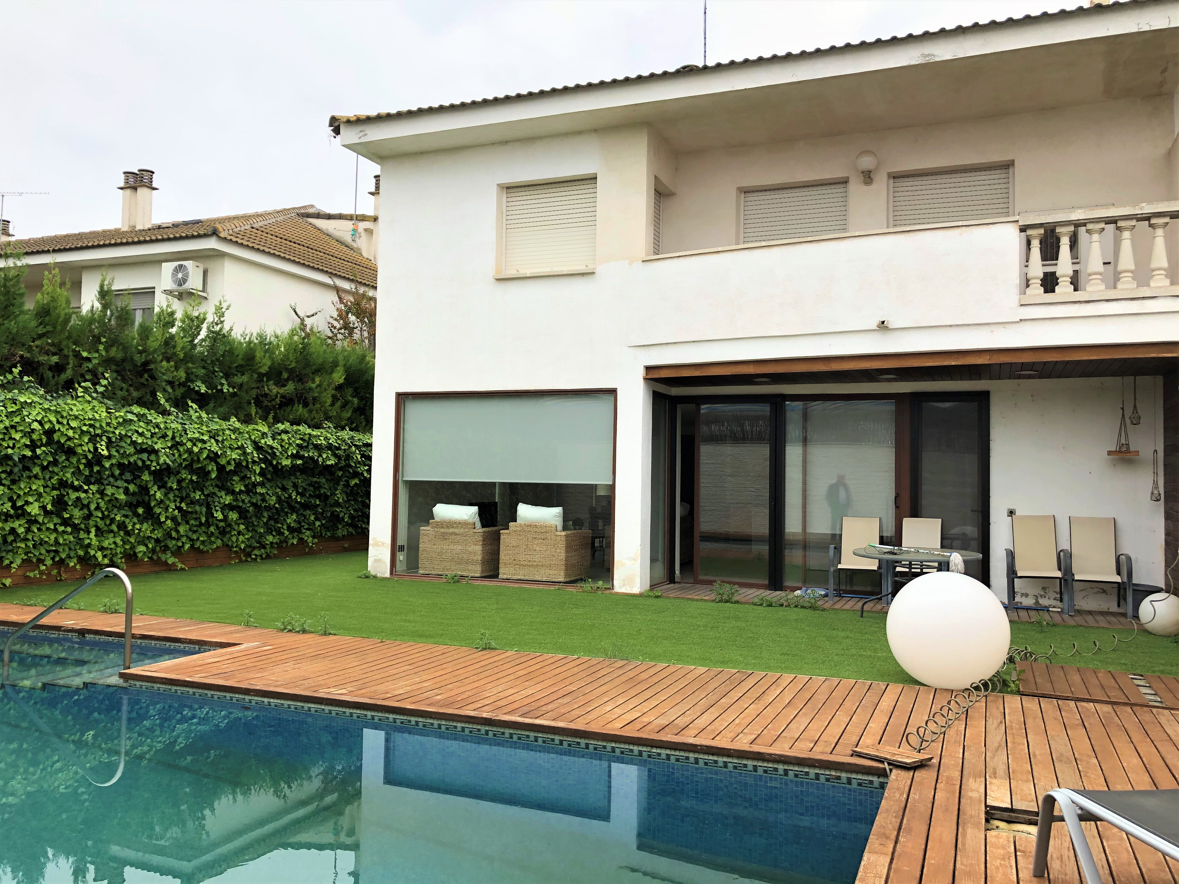 Es ven aquesta magnÃfica casa de 364 m². A la planta baixa hi trobem un garatge amb capacitat de 4 cotxes, un menjador amb la seva cuina corresponent des d’on s’accedeix a la zona enjardinada de l’immoble el qual disposa d’una magnÃfica piscina, una habitació de matrimoni i un bany amb plat de dutxa. A la primera planta hi ha un rebedor, el menjador, la cuina, quatre habitacions molt grans i dos banys amb banyera. I per finalitzar unes golfes en molt bon estat.
