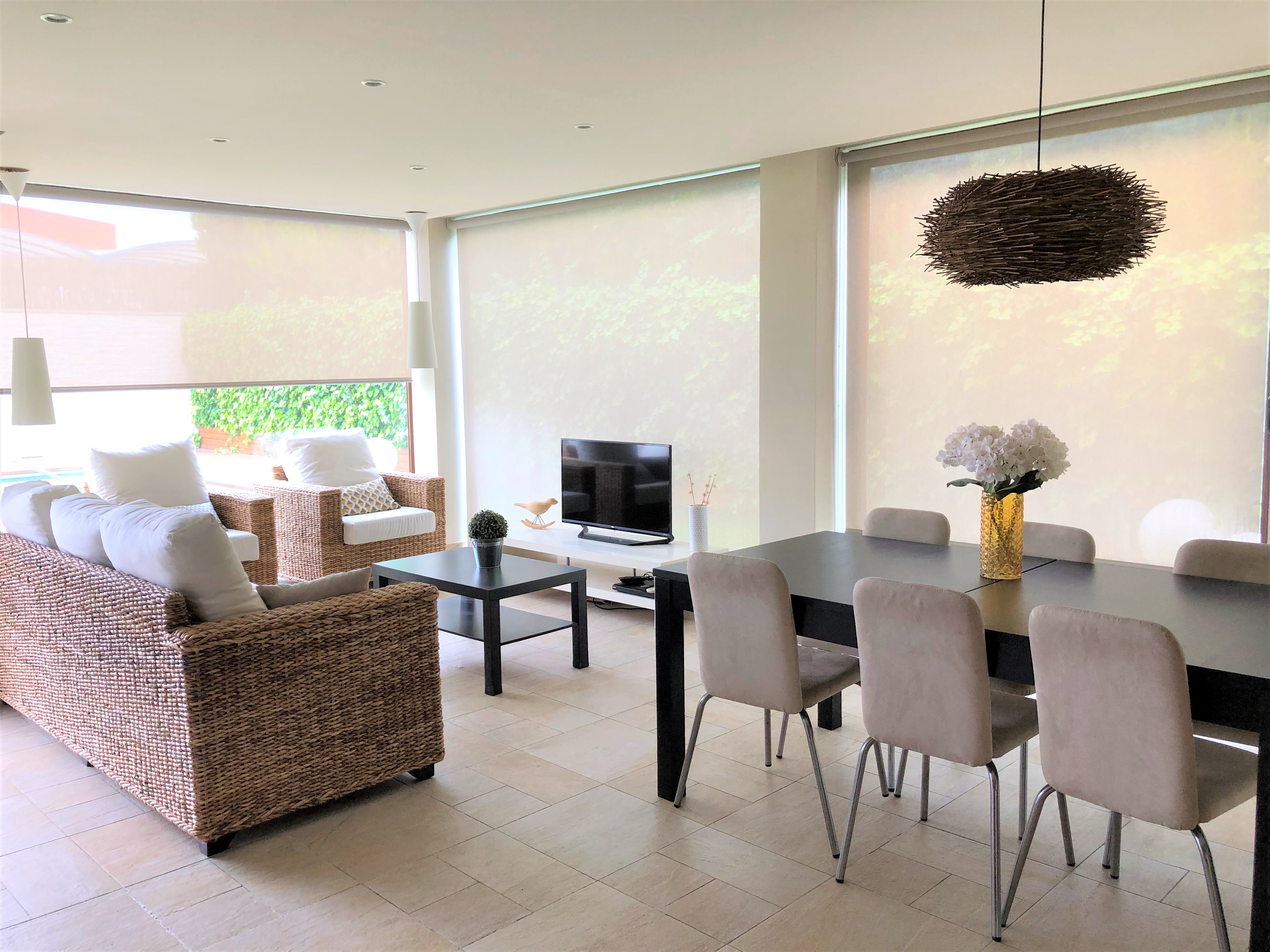 A la primera planta hi trobem el rebedor, dos menjadors molt amplis i amb molta llum natural, una cuina amb sortida a la terrassa, des d’on es pot accedir al garatge i a un quarto de rentar, amb rentadora i assecadora i un petit bany.